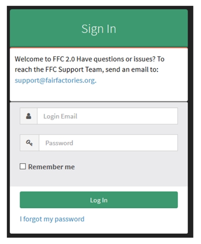 如果是您的品牌成员(brand member)要求您在FFC平台上进行SLCP评估,请他们在您的工厂简介页面上为您创建一个工厂登录名。你要做的就是向他们提供您公司的电子邮件地址。如果您使用的是独立于品牌的FFC平台,那么FFC支持团队可以为您创建一个登录名。联系支持团队,发送电子邮件至:SLCPSupport@fairfactories.org。电子邮件应包括您的工厂名称,完整地址和您的公司电子邮件地址。