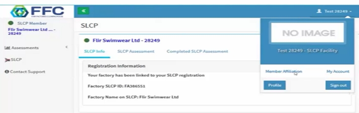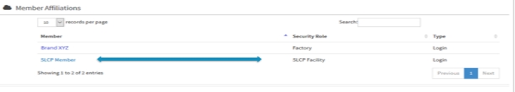 当您重新登录到平台时,您将看到“成员从属关系”页面。每次登录到FFC时,您都会登陆此页面。在本页上,当您选择何时代表SLCP的某个品牌工作时,当您希望开始评估或更新评估进度时,请选择SLCP成员。