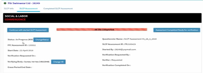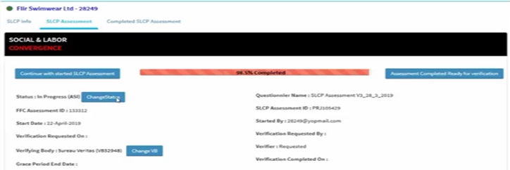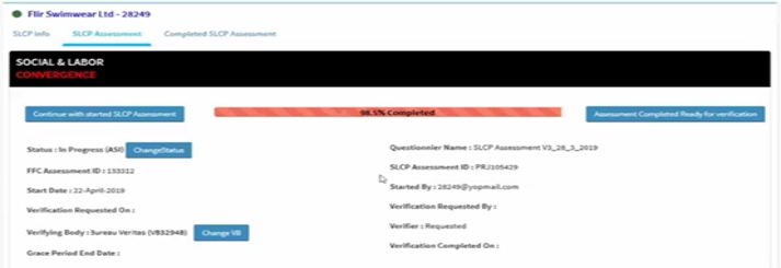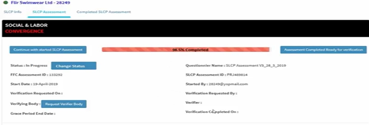 当他们点击“评估完成准备验证”按钮时,工厂可能将面临问题,因为系统将检查您的评估是否符合SLCP要求。