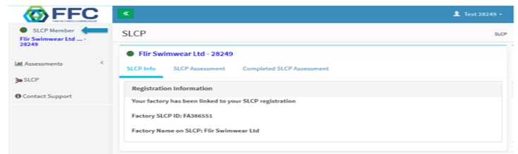 当您选择SLCP会员时,您将进入SLCP页面。SLCP页面有三个点击。这里您代表您的SLCP成员告诉您登录,因为SLCP成员显示在您的菜单顶部。如果您想代表您的品牌登录,您的品牌名称就在这里。