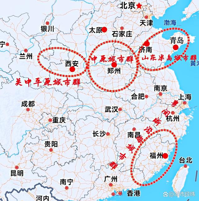 中原城市群和关中平原城市群这些年的一体化发展进度缓慢,两个城市群单打独斗的难以真正改变局面!然而,两个城市群地域相邻,资源也存在着一定的互补性,如果能够合作,必定是共赢的局面!所以,建议将中原城市群和关中平原城市群合并,同时将山西中南部地区纳入其中,可以叫作“黄河中游城市群”或者“豫陕晋沿黄城市群”,同时将郑州、西安和太原确定为三大中心城市,共同推动城市群一体化发展,培育中西部地区新兴增长极。